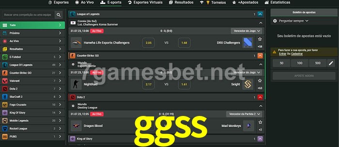 O ggss oferece uma grande seleção de opções de apostas em e-sports com probabilidades competitivas